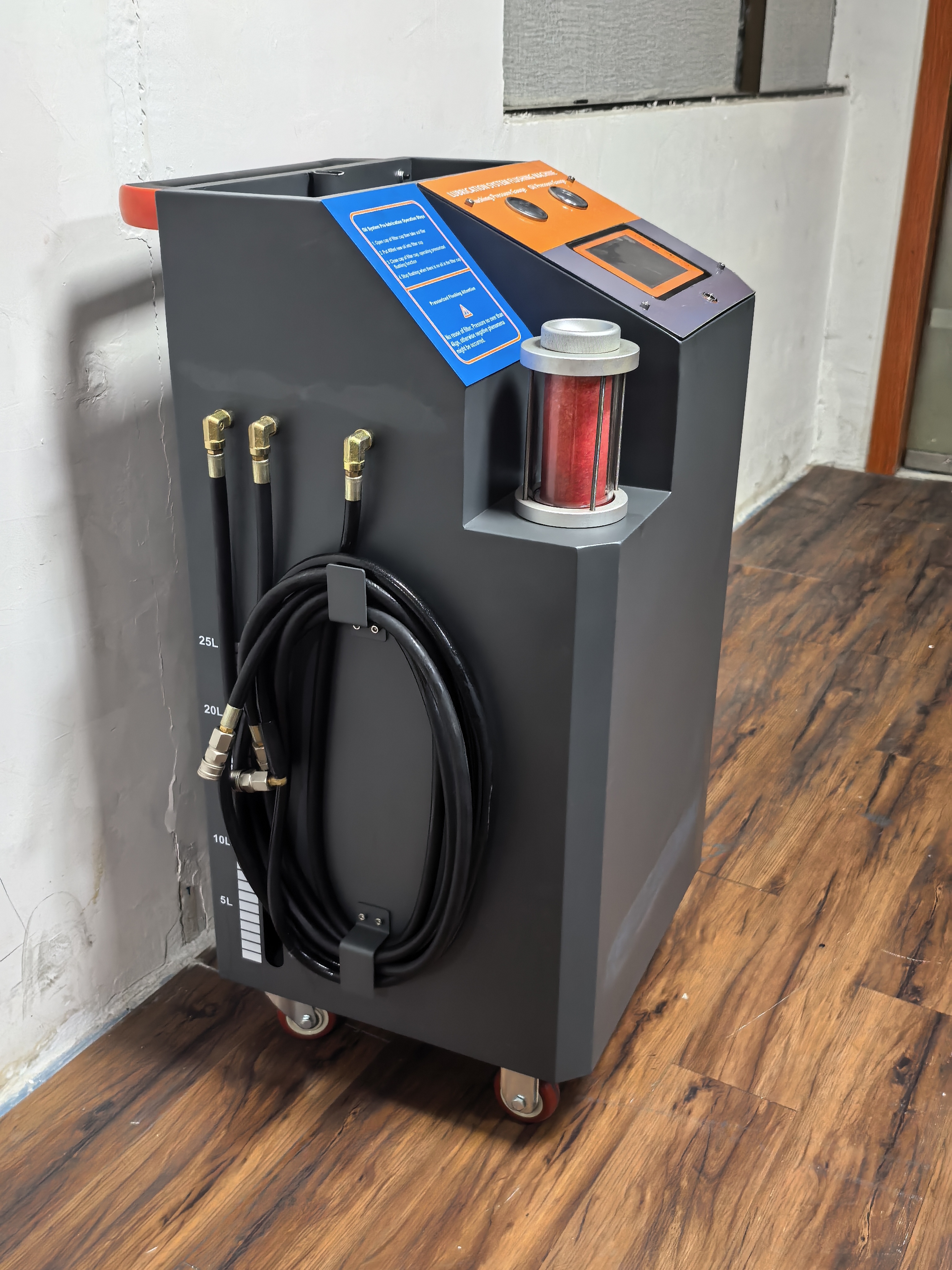 Funzioni: Riempimento olio di pulizia. Pulizia a circolazione,Riciclaggio dell'olio di pulizia, Soffiaggio ad aria. Prelubrificazione, conteggio delle volte utilizzate.